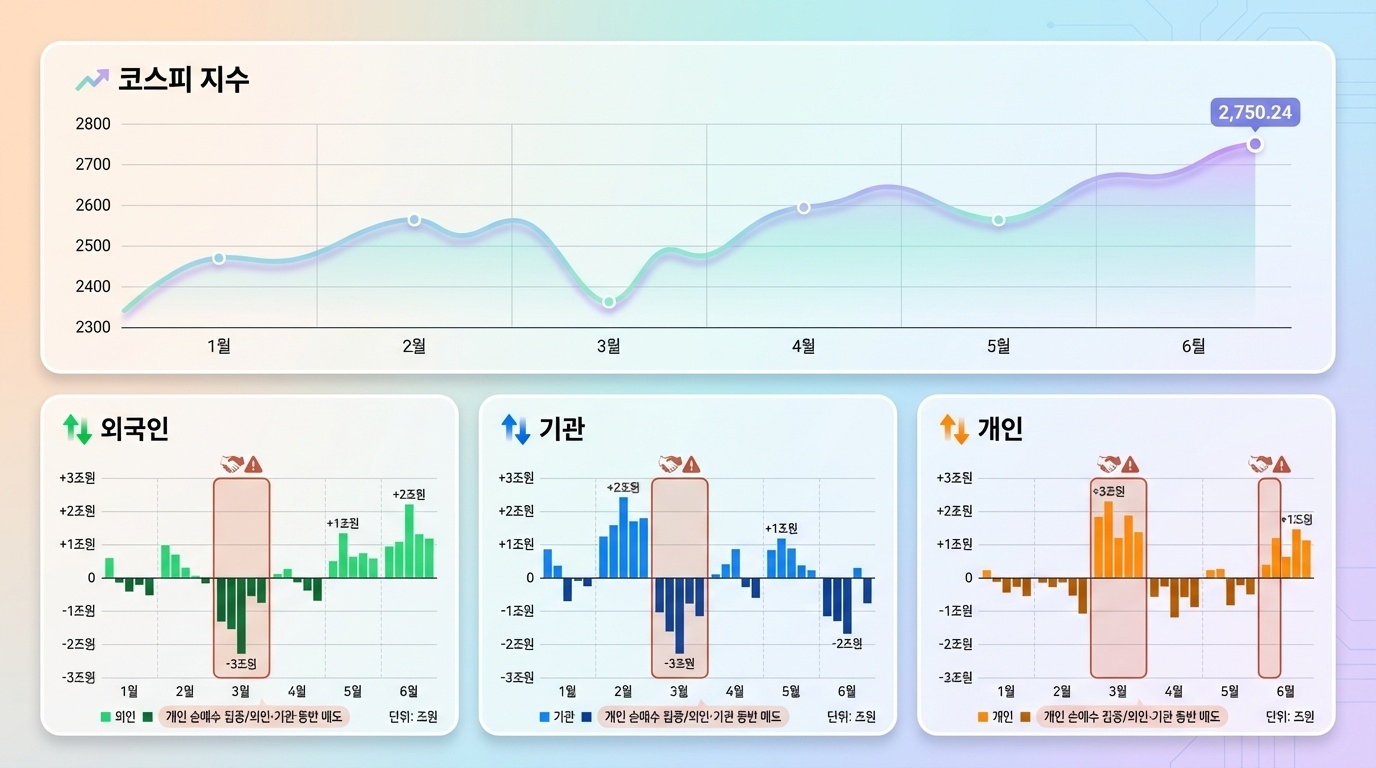 과거에는 종목의 실적과 성장성만 보고 투자해도 일정 부분 성과를 기대할 수 있었습니다. 하지만 지금 시장은 “누가, 언제, 얼마나 사거나 파느냐”가 가격을 좌우합니다. 특히 시가총액 상위 종목의 경우, 외국인과 기관의 대량 주문 한 번에 지수가 통째로 흔들리기도 하죠.