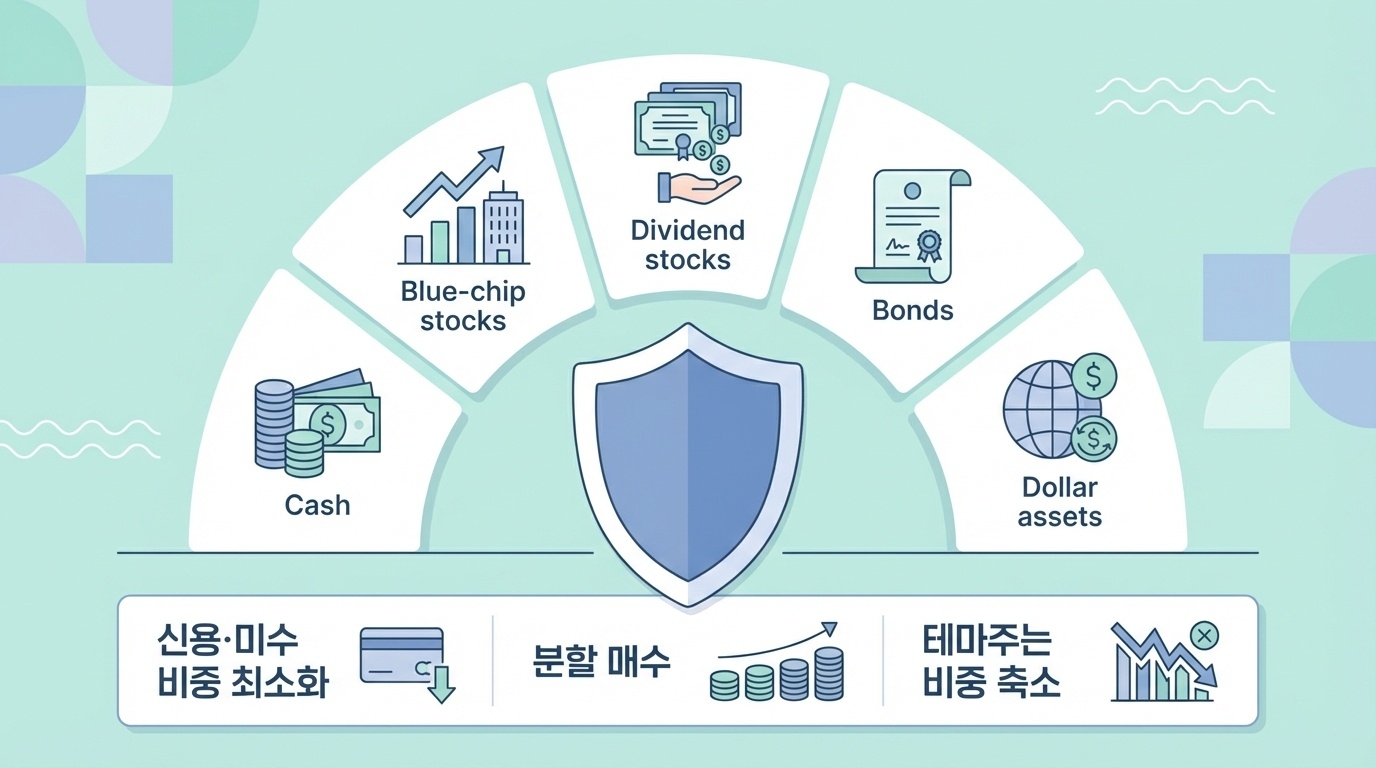 - 신용·미수 비중을 최소화하고 현금 비중 20~30% 확보