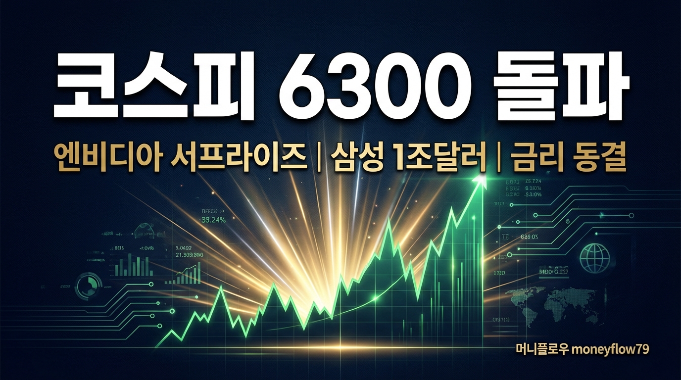2026년 2월 26일 슈퍼 수요일 결산. 엔비디아 매출 681억달러 어닝 서프라이즈, 삼성전자 시총 1조달러 돌파, 코스피 6307 마감. 한은 금리 동결·성장률 2% 상향, K점도표 첫 공개까지 투자자 필수 정보를 총정리합니다.