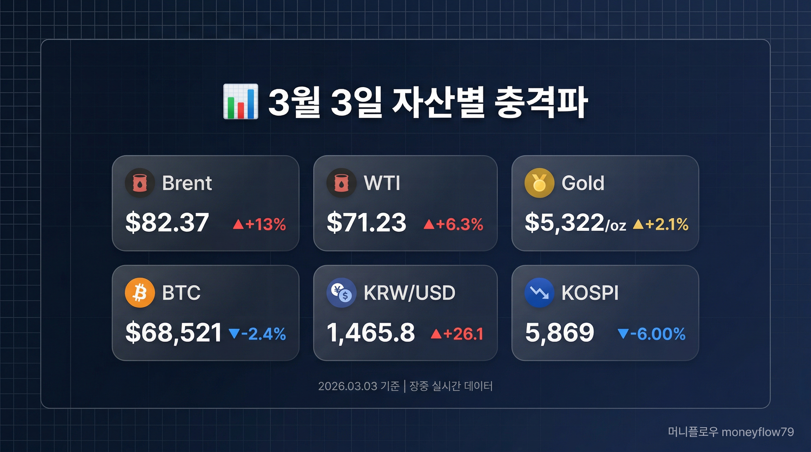 | 이란 전쟁 첫 주 총결산! 코스피 -10.56%·WTI 90달러·환율 1500 돌파 — 역대 최악의 한 주, 다음 주 생존 전략 5가지 (0) | 2026.03.07 |