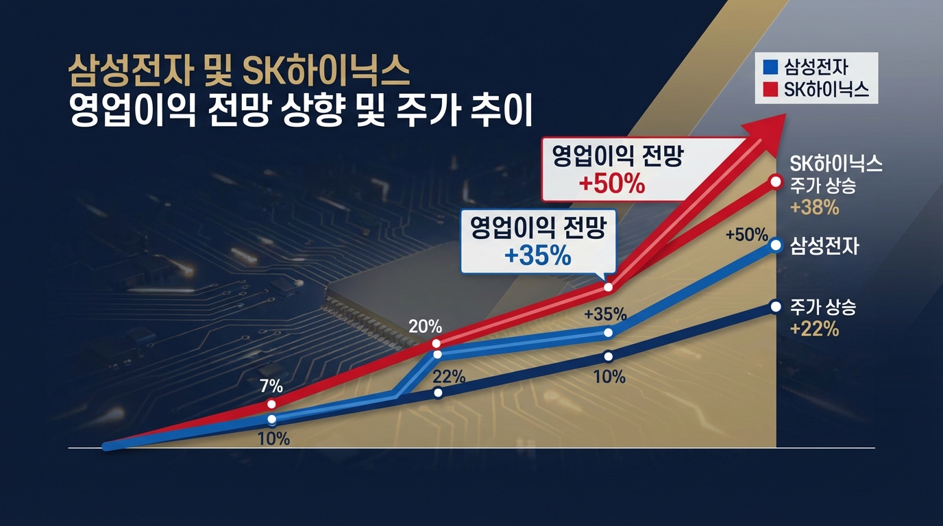 개별 종목 목표주가도 공격적으로 상향되고 있습니다. SK증권은 삼성전자 목표가 30만 원, SK하이닉스 150만 원을 제시했고, 대신증권은 삼성전자 27만 원, SK하이닉스 145만 원으로 올렸습니다. 맥쿼리증권은 삼성전자 34만 원, SK하이닉스 170만 원까지 전망했습니다.