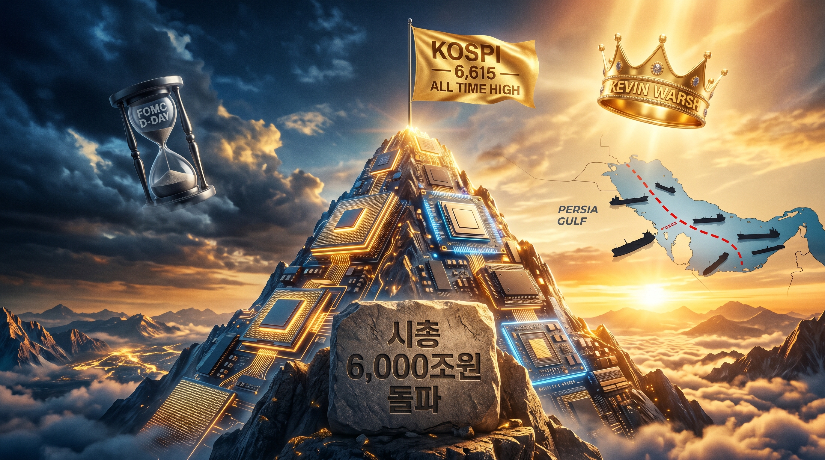 코스피 6,615 사상 최고·시총 6,000조 돌파 — 이란 신규 협상안 제시, 케빈 워시 연준 인준 청신호, FOMC D-day ⓒ 머니플로우